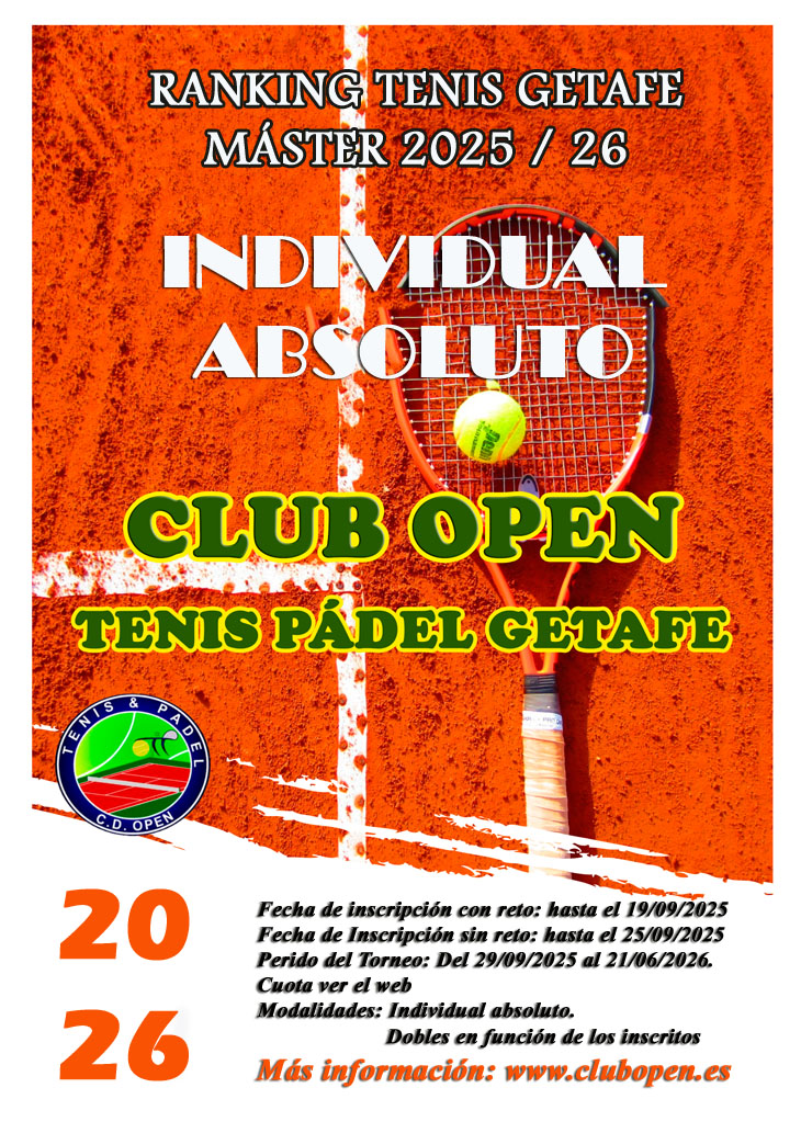 INSCRIPCIÓN AL MASTER O SOCIO C.D.E. OPEN TENIS & PADEL GEATFE